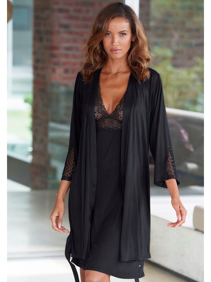 Элегантное кимоно от Lascana. С кружевными вставками на рукавах и завязкой на талии. Короткая длина. Внешний материал: 100% вискоза