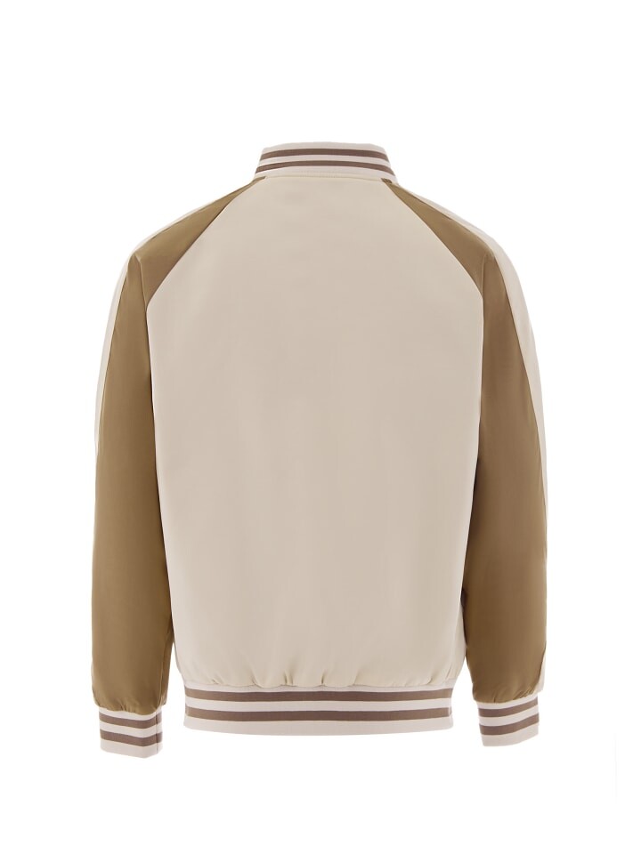 Оцените университетскую куртку в университетском стиле, которая излучает неподвластную времени привлекательность. Куртка имеет ребристый воротник-стойку и застежку на кнопки, а также длинные рукава с контрастной тканью на рукавах. Ребристые манжеты и пояс украшены полосатым узором, придающим изюминку. Эта классическая куртка-бомбер с прорезными карманами на уровне талии обеспечивает непринужденный стиль и комфорт.