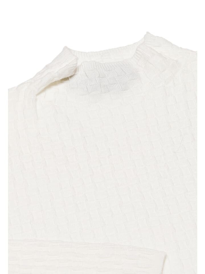 Этот свитер с высоким воротником, созданный для стиля и комфорта, имеет высокий воротник в рубчик, который элегантно складывается. Облегающий силуэт повторяет изгибы тела, а рукава и манжеты украшены соответствующими ребристыми деталями. Этот свитер с прямым подолом, заканчивающимся на уровне талии, и узорчатой тканью идеально подходит для того, чтобы согреться в прохладном климате.