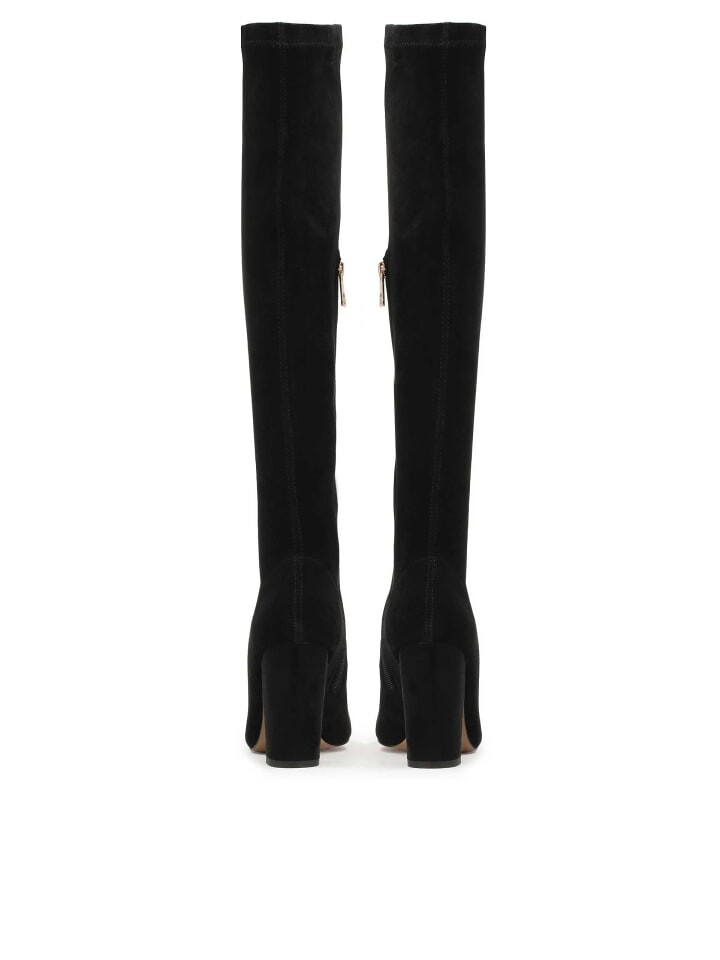 Черные женские ботфорты из качественной зерненой кожи – исключительно элегантная модель, красиво смотрящаяся на ноге. Очень высокий голенище, свойственный этому типу обуви, придает женственность и чувственность и прекрасно подчеркивает фигуру. Большим преимуществом тканевого голенища является то, что оно оптимально адаптируется к форме ноги. Широкий каблук устойчив и удобен.
