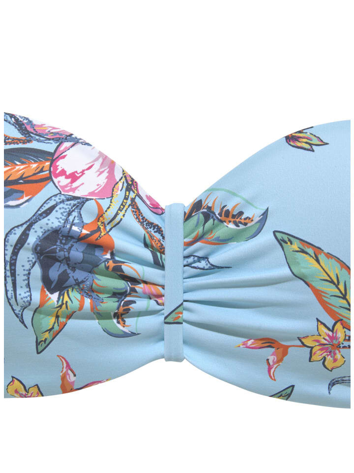 Модный топ-бандо на косточках от Lascana с цветочным узором. Чашки A и B также имеют съемную набивку. Бретельки завязываются на шее, съемные. Застежка сзади. Для индивидуальных пляжных нарядов: комбинируйте и сочетайте. Эластичный материал, удобный в ношении.