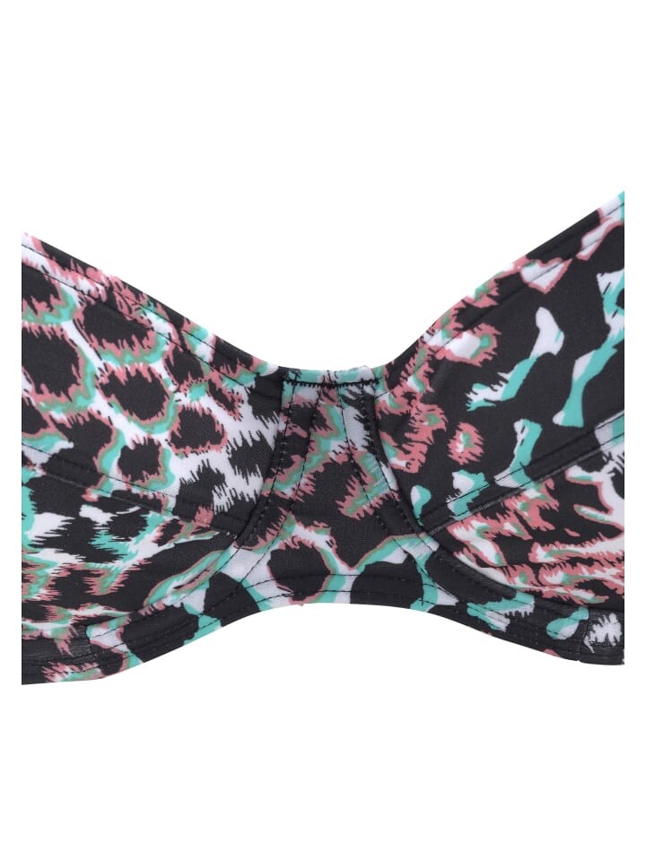 Великолепно смотрится в черном цвете в сочетании с ярким леопардовым принтом. Топ на регулируемых бретелях. Брюки чуть более высокого покроя с принтованными вставками на манжетах. Усиление лифа в боковой части крыла.