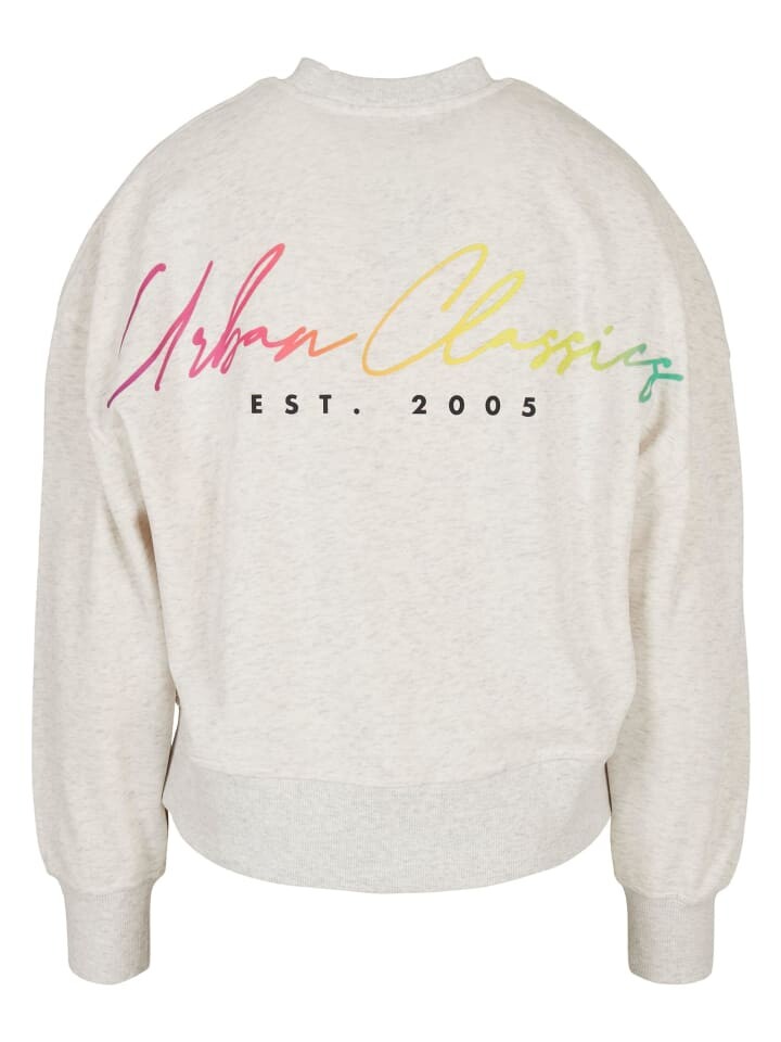 Красочный логотип на спине определяет дизайн этой женской толстовки. Надпись-логотип Urban Classics выполнена в виде принта всех цветов радуги и украшает спину. Повседневный крой оверсайз с широким вырезом на плечах и мягкая махровая ткань обеспечивают дополнительный уют и комфорт.