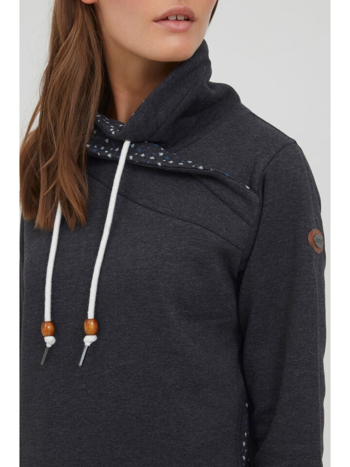 ДЕТАЛИ И ОСОБЕННОСТИ: Женская толстовка с воротником-стойкой, боковыми, слегка закругленными карманами, логотипом из искусственной кожи над нижним краем, эластичными трикотажными манжетами на рукавах и подоле, кулиской на воротнике-стойке с декоративными деревянными деталями, цветочным принтом. подкладка на воротнике и карманах, значок с логотипом на плече, стандартный крой