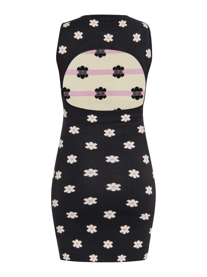 Эта красавица без рукавов демонстрирует изысканный цветочный узор, безупречно распределенный по ткани. Благодаря круглому вырезу, отсутствию видимых рукавов и украшений, оно излучает простоту. Это платье, созданное для того, чтобы подчеркнуть ваши изгибы с помощью облегающего силуэта, идеально подходит для любого случая. Эффектный вырез сзади придает этому уникальному платью интересный элемент.