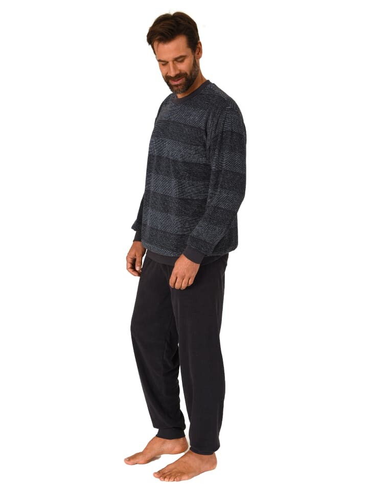 Мужская длинная махровая пижама Normann с манжетами - также в больших размерах - в полоску