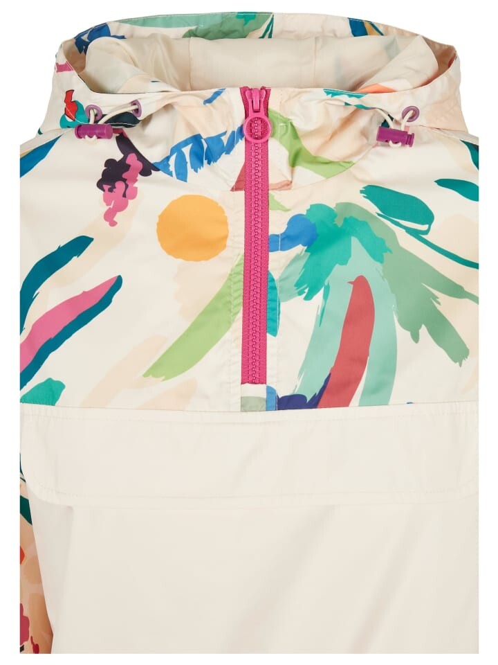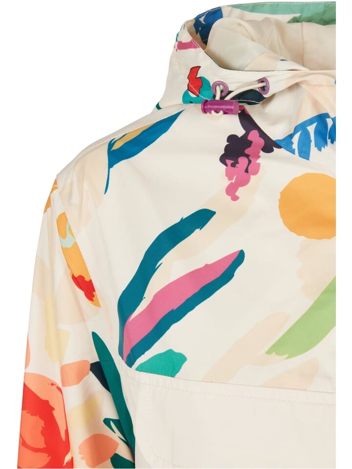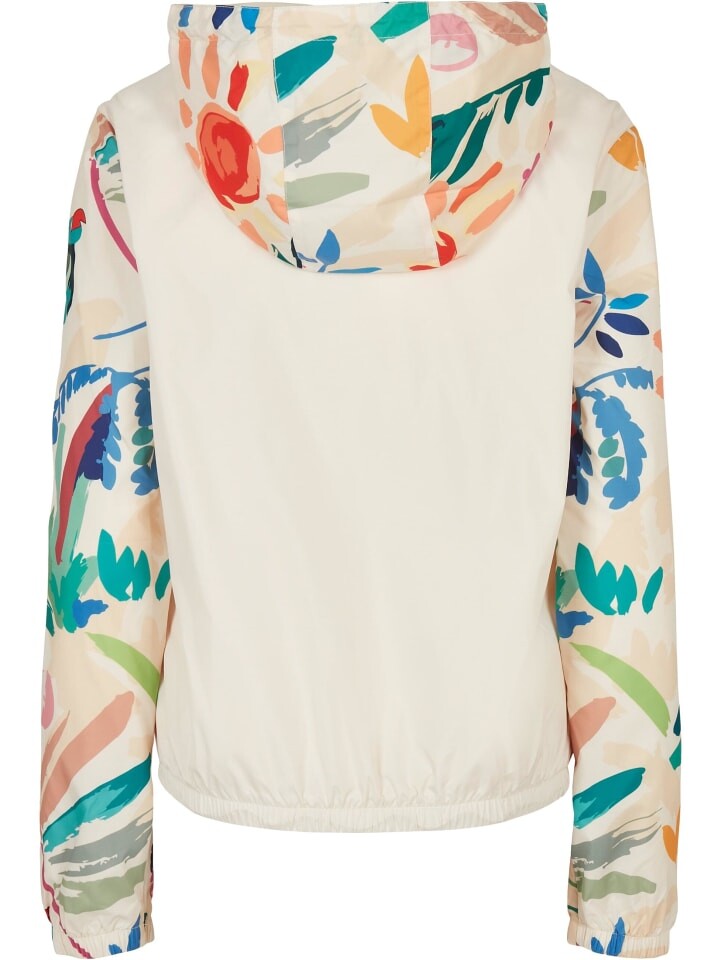 Эта спортивная женская куртка впечатляет своей функциональной формой, но, прежде всего, женственным цветовым дизайном: рукава, плечевая зона и капюшон выполнены в красочном сплошном принте с широкими линиями и природными формами. Остальная часть тела однотонная. Большой капюшон с эластичной кулиской и стопорами, а также молния от ложного кармана до воротника, застежка-молния которого выполнена в контрастном цвете, обеспечивают комфорт. Внизу на груди имеется клапан, оснащенный застежкой-липучкой. Низ можно отрегулировать до нужного размера благодаря эластичному шнурку и ограничителю, манжеты также эластичные. Два боковых кармана завершают стиль. Модный женский пуловер изготовлен из полиэстера на подкладке из тафты. Посадка стандартная.