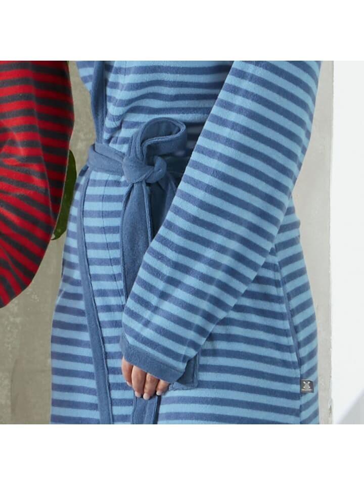 Легкий махровый женский халат Erwin Müller. Ультракомфортный халат с капюшоном станет идеальным спутником на оздоровительном отдыхе или дома. Он льстит коже и обеспечивает всестороннее хорошее ощущение. Вязаные полоски придают этому шикарному аксессуару для ванной комнаты современный и освежающий вид. Подкладка капюшона, пояс и манжеты создают красивый цветовой контраст. С боковыми карманами. Изготовлен из удивительно легкого махрового материала. Это приятное, мягкое и приятное на ощупь качество особенно удобно в носке, быстро сохнет и за ним легко ухаживать.