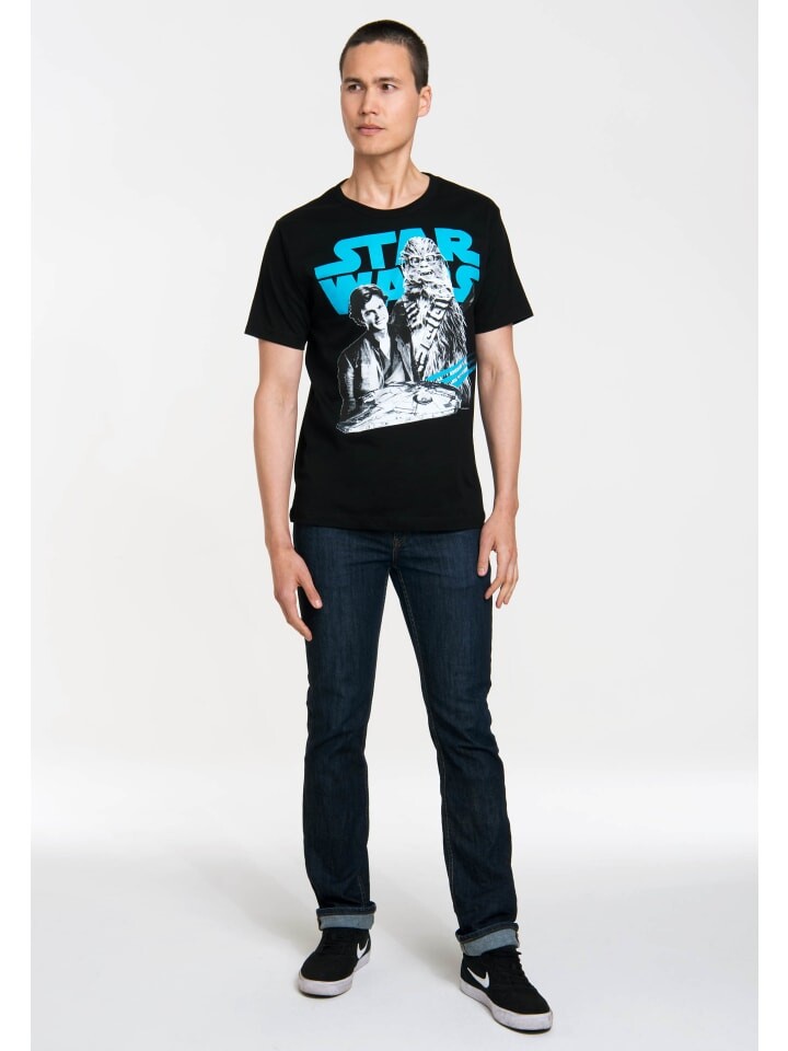 Непобедимая команда: на футболке «Звездные войны: Соло и Чубакка» от Logoshirt напечатан знаменитый дуэт Хан Соло и Чубакка. Конечно, нельзя пропустить культовый «Милениум Сокол». Футболка незаменима для фанатов «Звездных войн». И стандартная посадка, и хлопковый материал обеспечивают комфорт. Благодаря качественной трафаретной печати в ретро-стиле принт выглядит как оригинал из 70-х. Благодаря предварительной усадке рубашка Easy Fit сохраняет свою форму даже после нескольких стирок. Бренд Logoshirt – это аутентичный дизайн, высокое качество и оригинальность. Используются только лицензированные оригинальные дизайны.