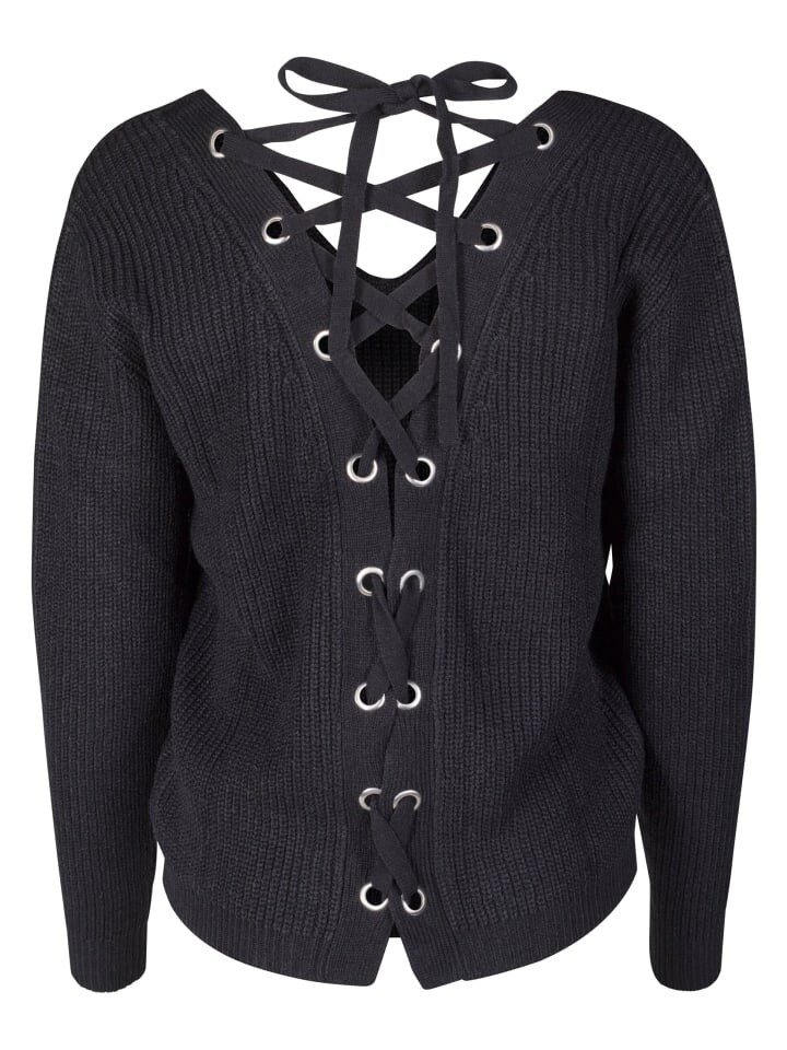 Повседневный и женственный одновременно: удивительно мягкий вязаный свитер отличается V-образным вырезом и изысканной шнуровкой с большими металлическими люверсами сзади. Широкую вязаную ленту можно зашнуровать индивидуально, так что вы можете носить удобный свитер очень широким или чуть более облегающим фигуру.