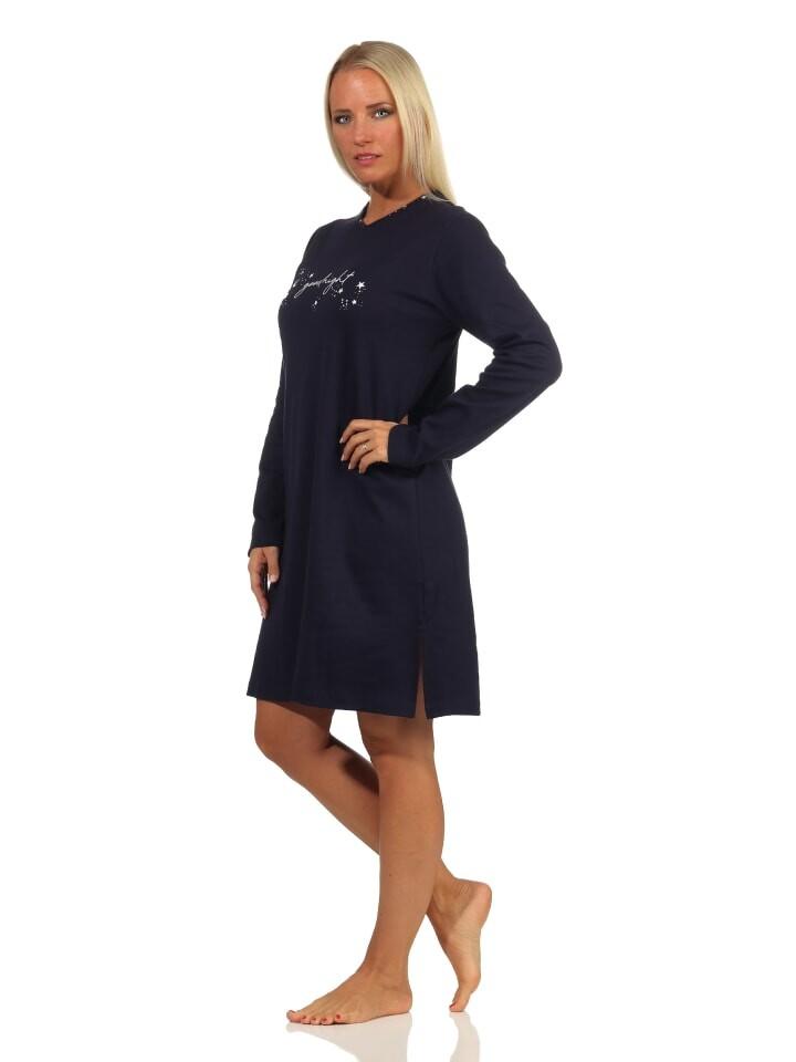 Я вижу звездное небо! Эта женская ночная рубашка с длинными рукавами из уютного материала интерлок имеет красивый звездный вид и ее можно носить как днем, так и вечером. Рубашка для сна с длинными рукавами украшена звездным принтом спереди, который придает ночной рубашке великолепный вид.