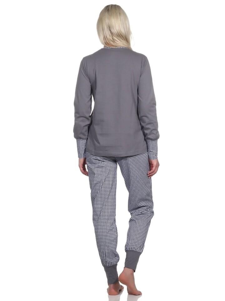 Женская пижама с длинными рукавами с манжетами, брюки в стиле «Пепита», топ с принтом спереди