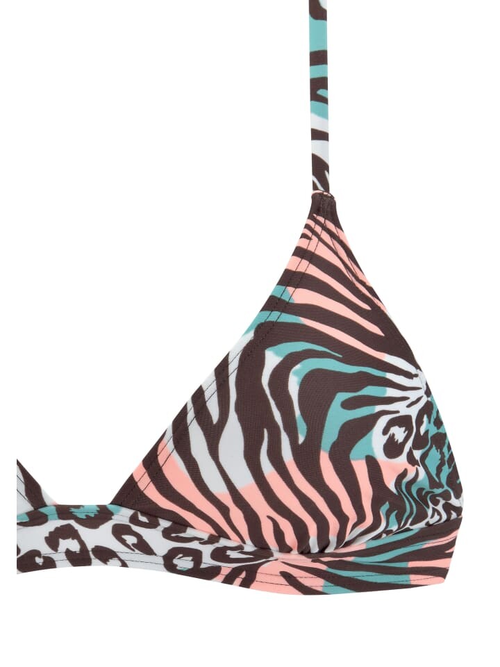 Треугольный топ от Venice Beach выполнен в великолепном анималистическом принте. Каждый принт индивидуален, поэтому каждый топ уникален. Съемные регулируемые бретели можно носить тремя разными способами: через шею, прямо или перекрещенными. Съемные чашки обеспечивают хорошую фиксацию. Внешний материал из мягкой микрофибры: 85 % полиамид, 15 % эластан. Подкладка: 100% полиэстер.