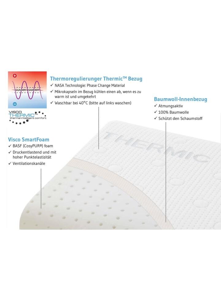 В дополнение к специальной подушке , терморегулирующий чехол с фазовым переходом (технология NASA), обеспечивающий идеальный климат для сна, подушка Visco также обладает другими характеристиками подушек Third of Life - высококачественной вязкоупругой пеной SmartFoam (CosyPUR) и полностью непрерывными вентиляционными каналами для оптимальной вентиляции!