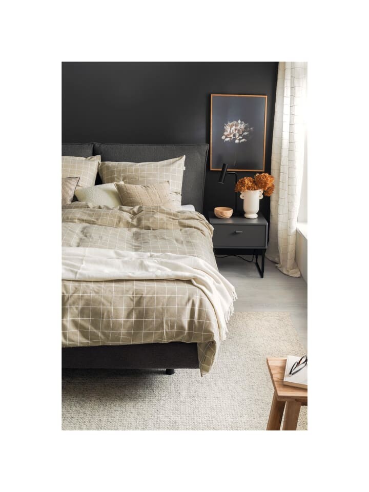 Если вы ищете уютное и стильное постельное белье, то фланелевое постельное белье Just от SCHÖNER WOHNEN – идеальный выбор. Постельное белье изготовлено из 100% хлопка и поэтому особенно мягкое и комфортное. Клетчатый узор со светлыми линиями на темном фоне придаст вашей спальне современный и модный вид. Постельное белье состоит из двух частей и оснащено практичной застежкой-молнией, которая позволяет с легкостью менять постельное белье. Постельное белье Just от SCHÖNER WOHNEN можно стирать в машине, что делает уход за ним особенно простым. Фланелевое постельное белье Just – это не только красивый вид, но и инвестиция в спокойный сон. Наслаждайтесь уютным теплом и комфортом, которые предлагает это постельное белье, и закажите его сегодня.