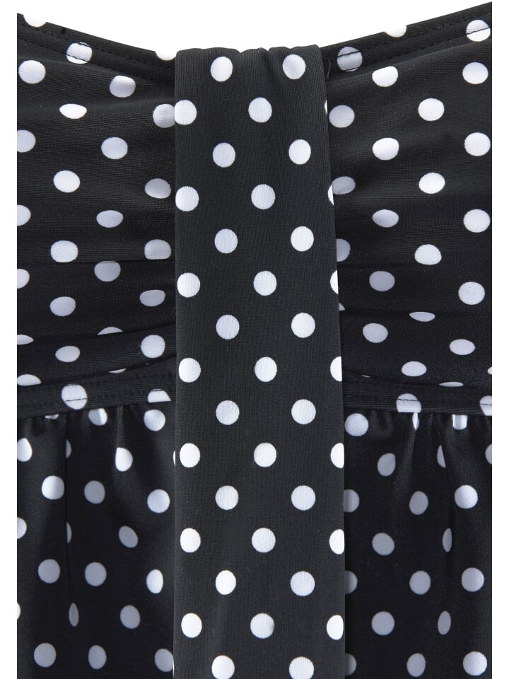 Купальник от LASCANA в модном женственном дизайне в горошек в двух цветах или однотонный черный в стиле танкини. Со встроенными мягкими чашками и моделирующей вставкой спереди для женственного силуэта. Область груди обтянута. Регулируемые бретели.