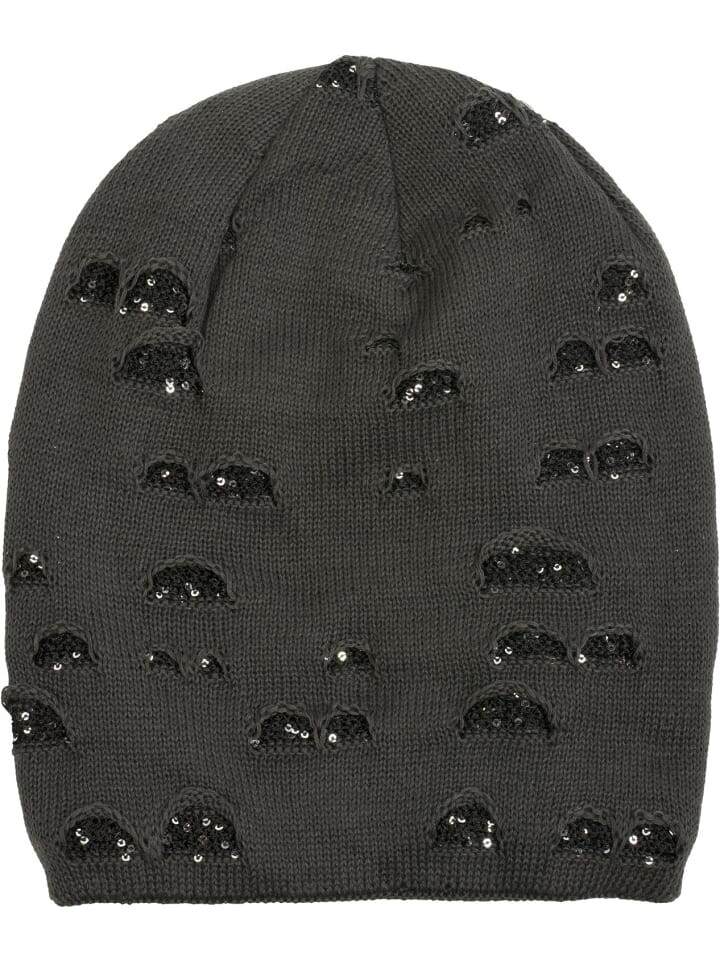 styleBREAKER крутая шапка-бини тонкой вязки с пайетками в поношенном виде.