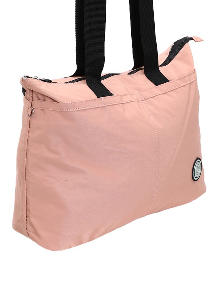Представляем сумку-тоут с прямоугольным основанием и открытым основным отделением, оснащенным двумя параллельными ручками для удобства переноски. Изготовлен из прочной ткани с видимыми вертикальными швами для усиления. Украшен круглым логотипом внизу спереди. Оснащен верхней молнией для надежного хранения. Простой и функциональный дизайн, идеально подходящий для покупок или повседневного использования.