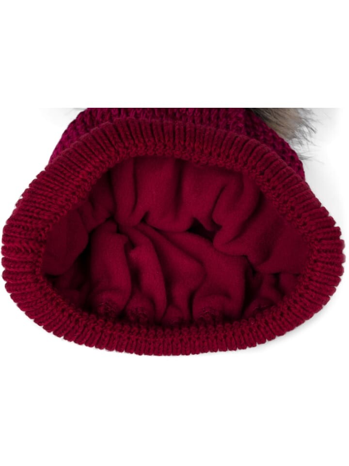 Элегантная вязаная шапка с двухцветным градиентом вязания подъемным узором и очень большим помпоном идеально подходит для холодного времени года. Подкладка из термофлиса удобна в ношении и сохраняет голову в тепле. Конечно, помпон сделан не из настоящего меха, а из безопасного для животных материала «искусственный мех». Шапка с помпоном эластичная, ее можно удобно носить при окружности головы примерно 59 см.