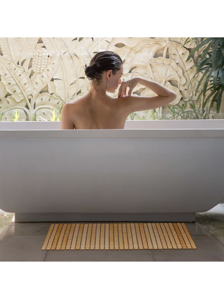 Коврик для ванной не только впечатляет естественным дизайном из бамбука, но и является практичной основой для защиты от холода ног в ванной или гостевом туалете. В качестве коврика перед душем или ванной бамбуковый коврик также предотвращает скольжение по плитке мокрыми ногами. Решетчатая конструкция влагостойкого коврика для ванной комнаты обеспечивает легкий слив воды. Бамбуковый коврик можно легко свернуть и хранить, чтобы сэкономить место.