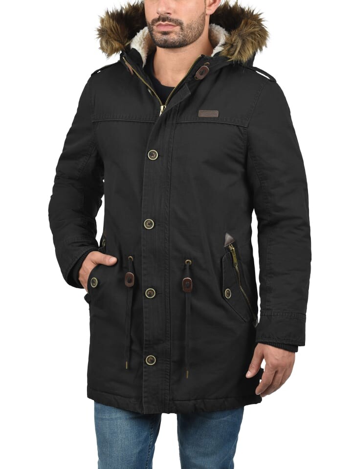 ДЕТАЛИ И ОСОБЕННОСТИ: Теплая подкладка, плюшевая подкладка в верхней части тела и в капюшоне, капюшон с кулиской и съемным искусственным мехом, кожаные аппликации, четыре боковых кармана (на пуговицах и на молнии) и один внутренний карман (застежка-липучка), клапаны на плечах, кулиска на уровне талии, эластичная резинка в рубчик. Манжеты на рукавах, разрез сзади, удлиненная спинка, нашивка с логотипом на груди, застежка-молния и пуговицы.