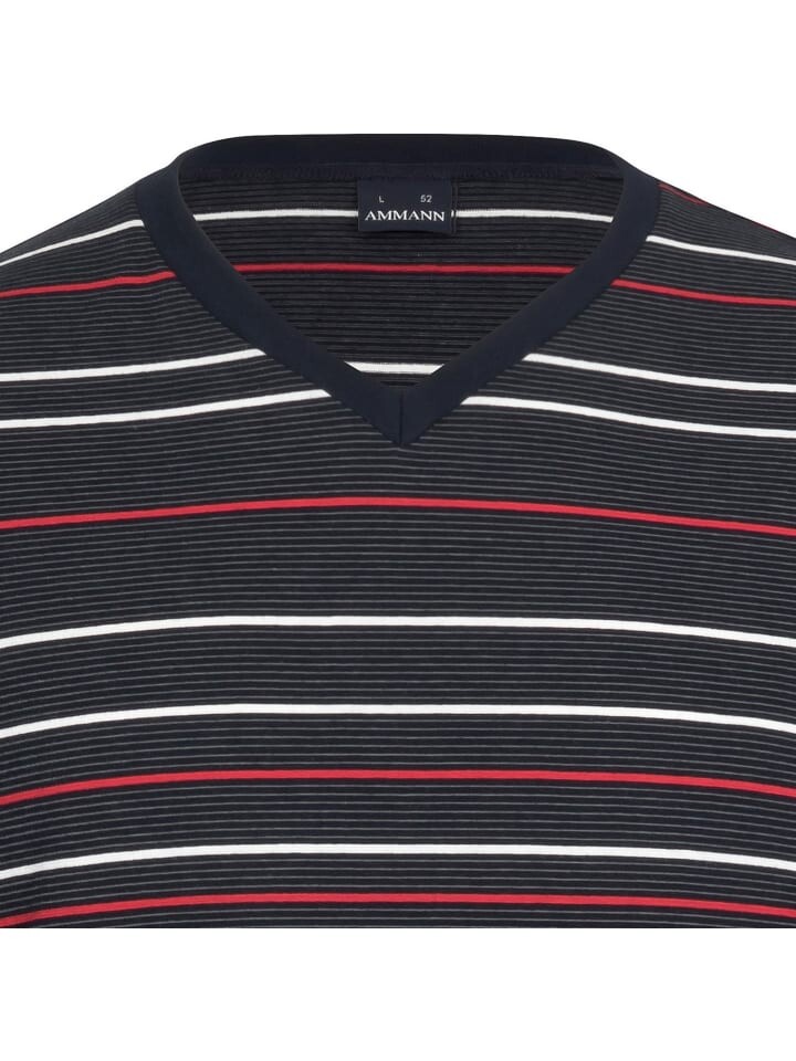 Мужская ночная рубашка Ammann из одинарного джерси. Наслаждение для сна и отдыха. Очень удобно носить благодаря повседневному крою и мягкой, приятной для кожи ткани. Вязаные манжеты на рукавах придают ночному наряду спортивный характер. Вязаный образ в полоску с V-образным вырезом и небольшим разрезом по бокам. Вы будете в восторге от прекрасного, приятного для кожи и приятного качества.