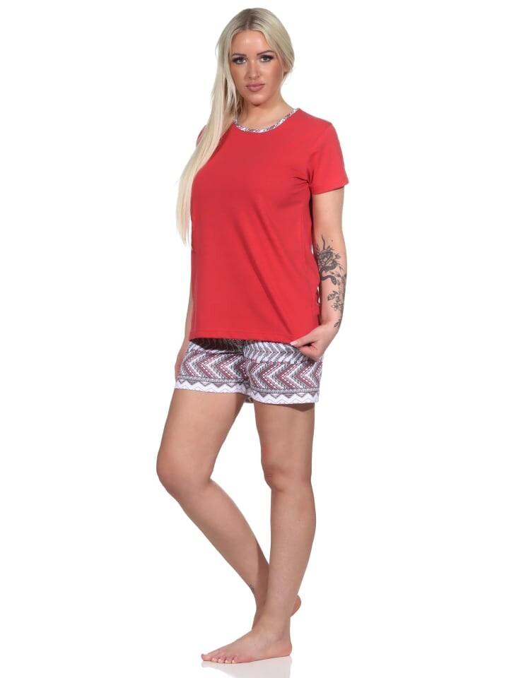 Эти красивые женские короткие пижамы впечатляют своим великолепным внешним видом - ваш хит на лето! Благодаря модному этническому узору ярких цветов эта короткая пижама также идеально подходит в качестве костюма для отдыха. Свободный крой и круглая горловина обеспечивают высокий уровень комфорта. Кроме того, ткань джерси очень эластична, удобна и не стягивает. Этот пижамный комплект подарит вам настоящее благополучие.
