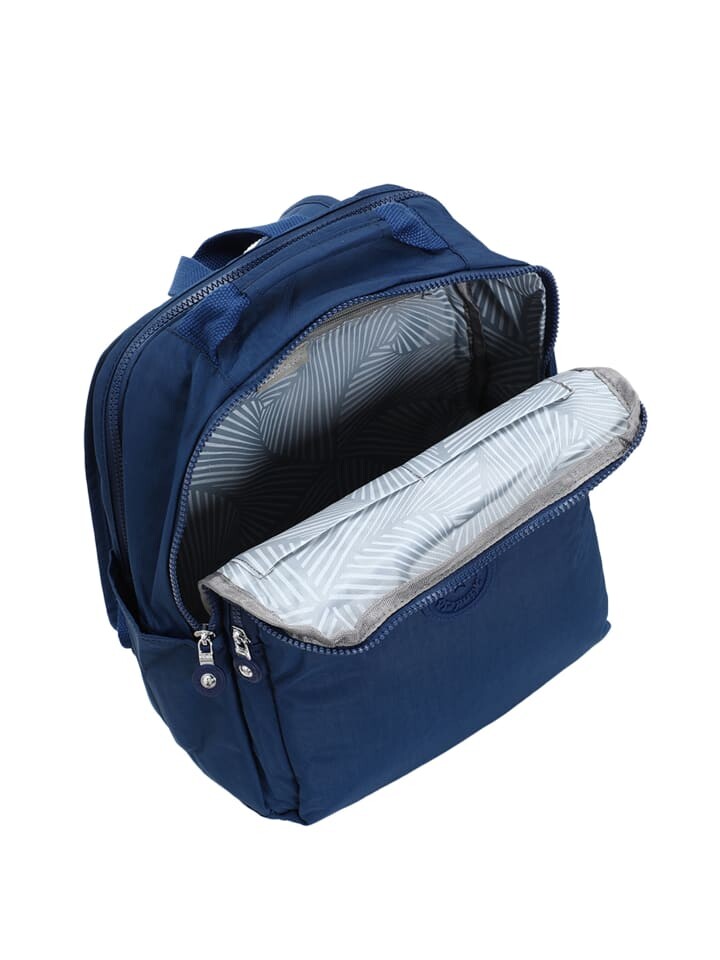 - Спереди имеется большой карман с тисненым круглым логотипом, а верхняя ручка и мягкие лямки обеспечивают удобство ношения.