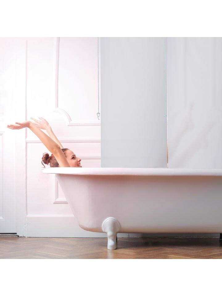 С помощью этой шторы для ванной вы можете принести домой современную альтернативу традиционной занавеске для душа. При необходимости рулонную штору для ванны можно прикрепить к потолку или прикрепить к окну. Он предотвращает попадание неприглядных капель воды в ванную комнату, а также снижает риск поскользнуться. Когда сухие рулонные шторы не используются, их можно свернуть, чтобы сэкономить место благодаря шкиву. Рулонные шторы с тросом также впечатляют визуально благодаря своей полупрозрачной конструкции белого цвета.