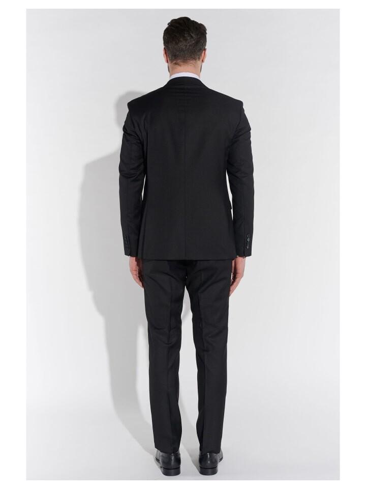 - Приталенный костюм с жакетом на двух пуговицах и элегантными костюмными брюками с узкими штанинами