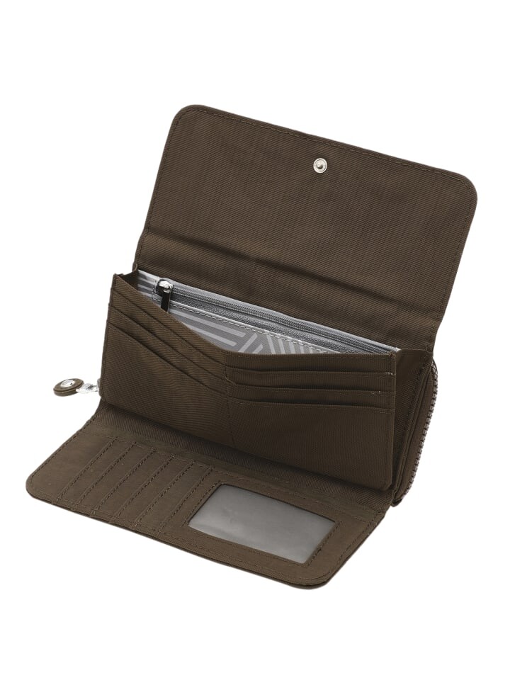 - Кошелек имеет надежную застежку-клапан с привлекательной круглой эмблемой с тисненым текстом и звездочкой.