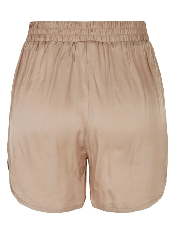Эти женские шорты сочетают спортивный крой с элегантной тканью из мерцающего атласа – настоящий модный предмет. Широкий эластичный пояс сидит высоко на талии, а широкие штанины имеют приподнятый внешний шов сбоку и, следовательно, небольшой разрез. Шорты имеют свободный крой.