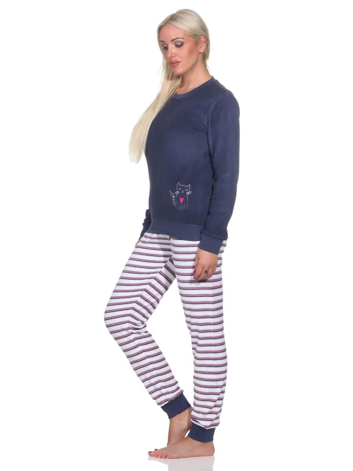 Женская махровая пижама, брюки в полоску, топ с милым животным мотивом - также в размерах оверсайз. Эти женские пижамы с длинными рукавами из уютной махровой ткани имеют особенный вид. Верх пижамы украшен милым животным мотивом, например милой ламой, кошкой, собакой и т. д., а брюки пижамы полосатые/полосатые.