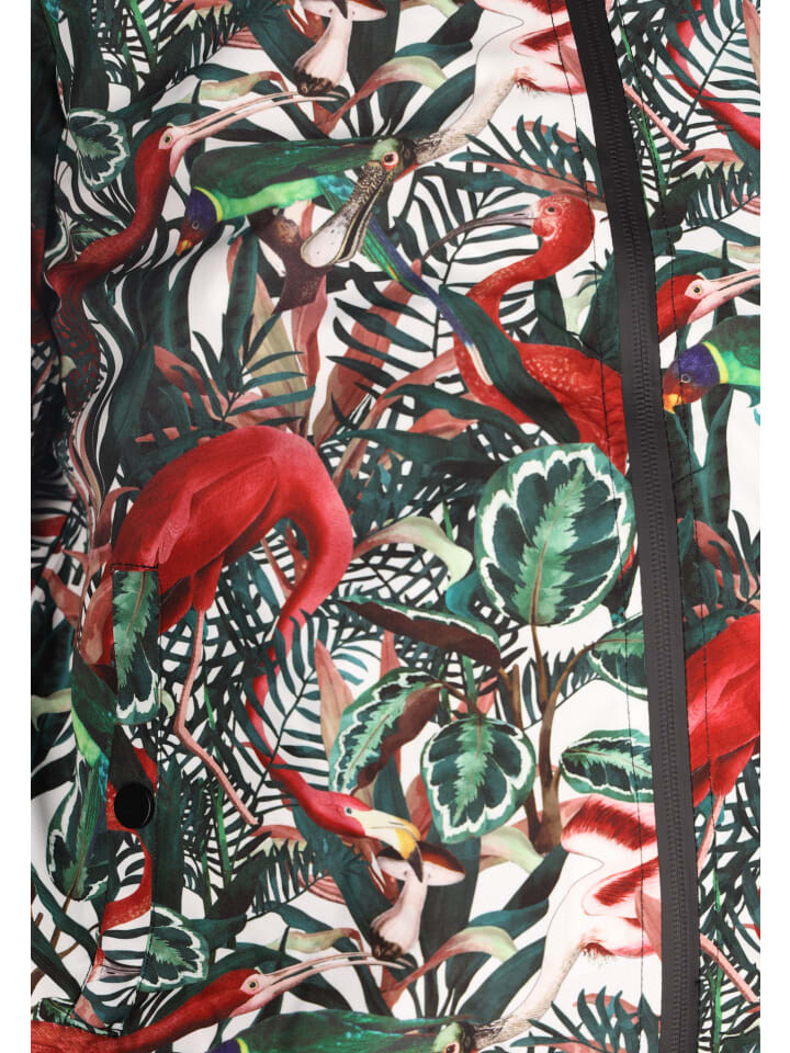 Этот бомбер, созданный для стиля и комфорта, оснащен молнией по всей длине спереди и ребристым воротником. Ребристый пояс и манжеты придают изделию изысканность. Эта куртка имеет замысловатый узор с мотивами флоры и фауны по всей поверхности, в том числе на рукавах. Она имеет стандартный крой и прямой низ, идеально подходящий для ношения в качестве верхней одежды.