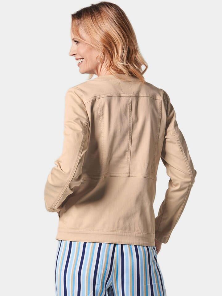 Куртка с круглым вырезом модного дизайна: тщательно продуманные швы и встроенные карманы подчеркивают ее особый характер. С декоративными клапанами и элегантными кнопками цвета матового золота. Спортивные швы на кокетке спереди и сзади гарантируют идеальную посадку. Суперкомфорт благодаря хлопку и эластану. Длина около 63 см по размеру. 46, размер около 59 см. 23.