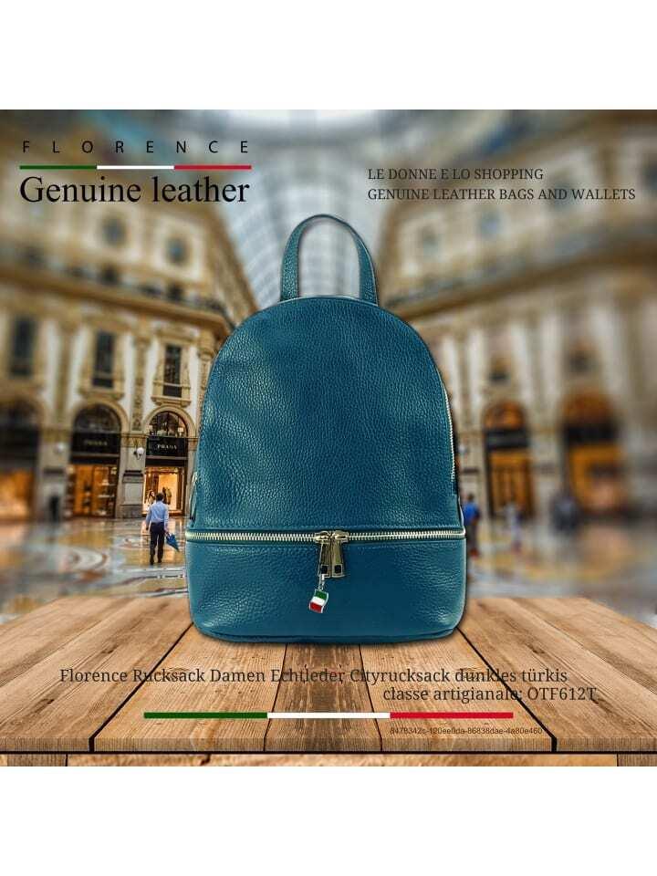 Городской рюкзак из натуральной кожи женский темно-бирюзовый Флоренция