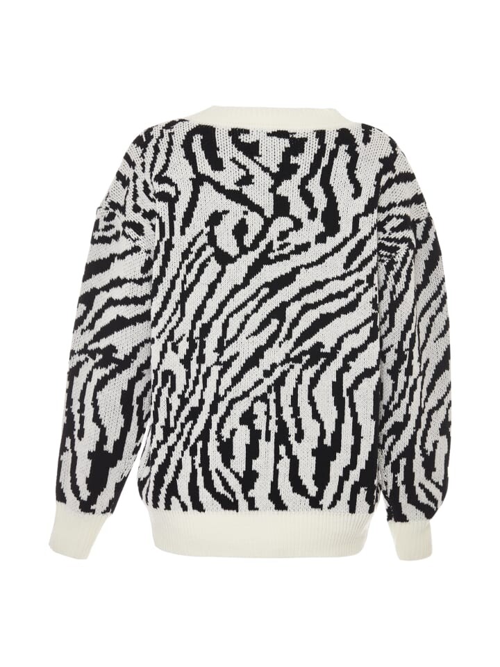 Украсьте свой гардероб черно-белым свитером с зебровым принтом от ebeeza. Изготовлено из мягкой акриловой пряжи, имеет классическую форму и ребристые манжеты.