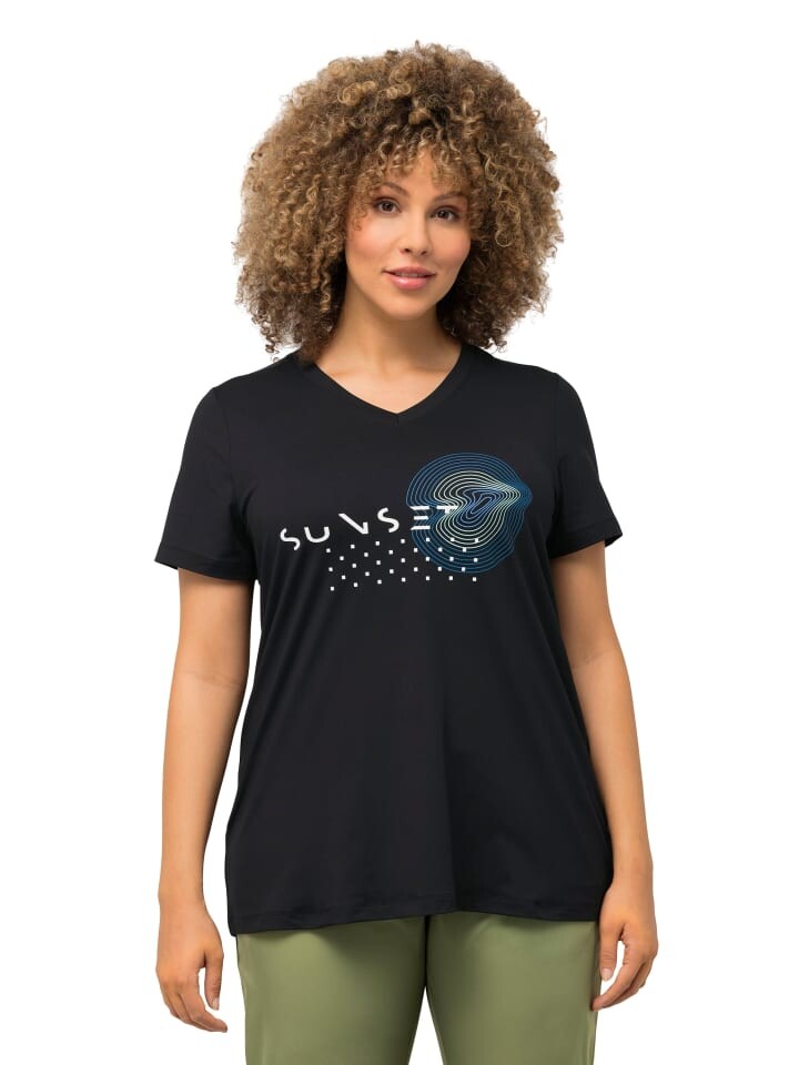 Функциональная рубашка классического кроя из дышащего трикотажа с принтом заката. Высушите быстрее с помощью QuickDry. V-образный вырез, рукава до половины. Изготовлено из переработанного полиэстера.