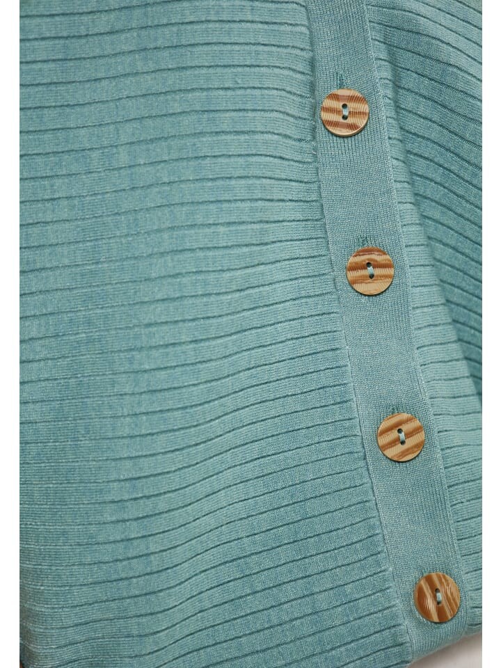 Представляем изысканный кардиган с длинными рукавами и структурированным ребристым узором. V-образный вырез элегантно заканчивается застежкой спереди на круглые пуговицы. Этот кардиган, созданный с большим вниманием к деталям, имеет эластичный пояс и манжеты для удобной посадки. Трикотажная ткань обеспечивает эластичность и непревзойденный комфорт, что делает ее идеальной для повседневной носки или для ношения поверх другой одежды.