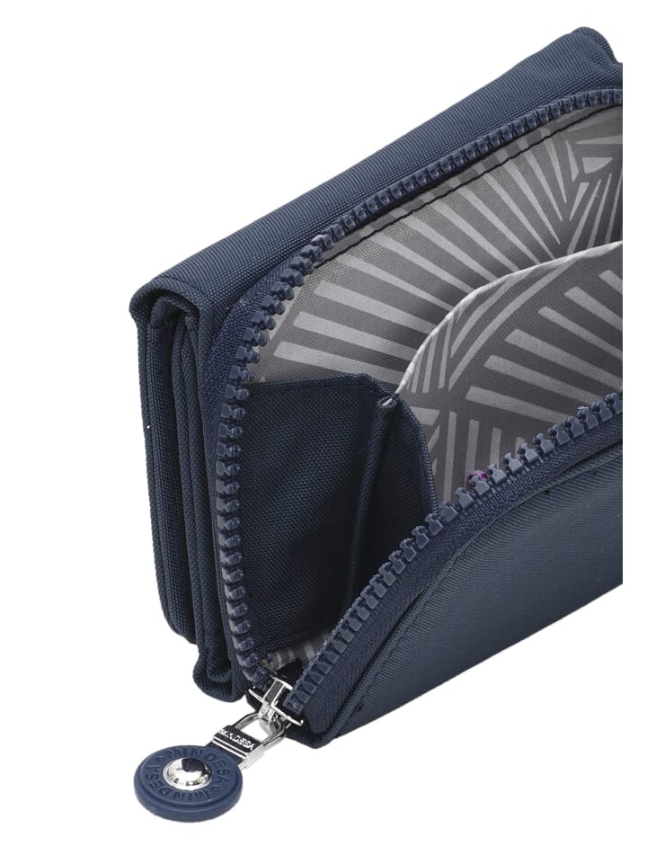 Созданный с высокой точностью, этот прямоугольный кошелек имеет закругленные углы и текстурированную отделку, придающую ему изысканность. На лицевой стороне находится круглая эмблема с тисненым текстом и изображением звезды, что указывает на премиальное качество. Этот компактный дизайн с гладкой застежкой-молнией и металлической ручкой позволяет легко хранить карты, наличные и мелкие предметы первой необходимости.