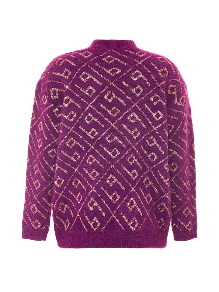 Вязаный свитер от ebeeza из смеси ворсованной пряжи имеет слегка ворсистый вид и чувственный вязаный узор из металлизированной пряжи золотистого цвета. В дополнение к классической форме он отличается вырезом на плечах и ребристыми трикотажными манжетами на конце.