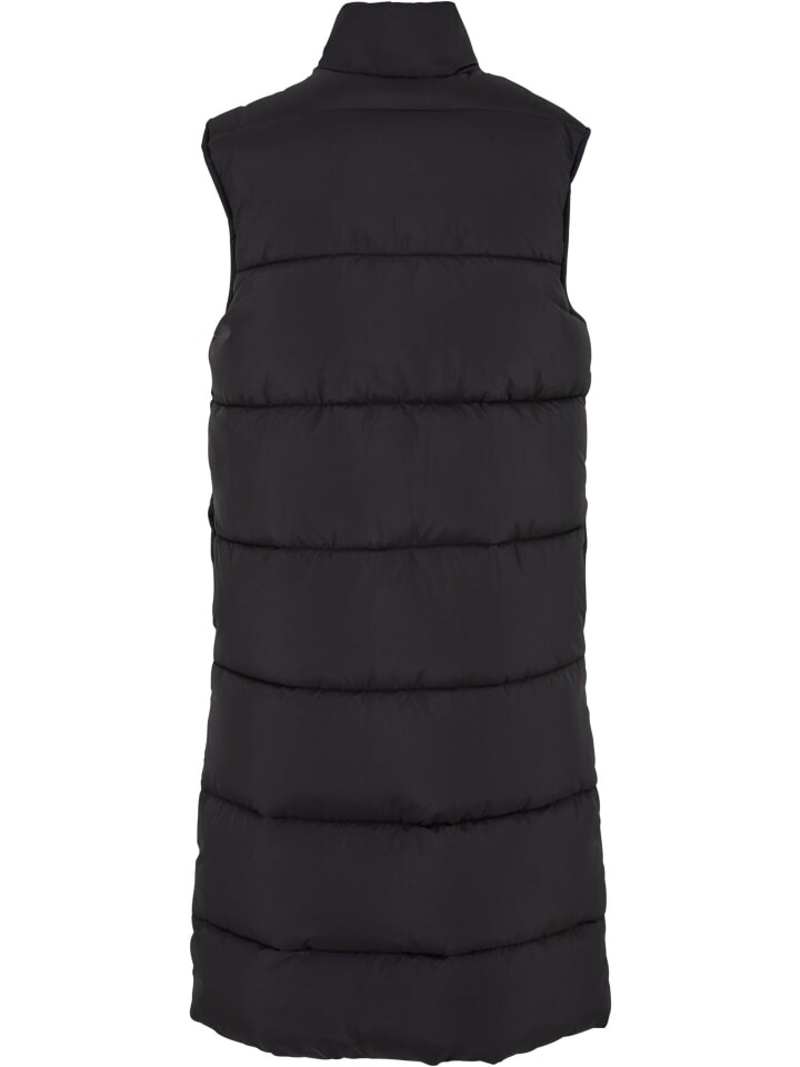 Женский жилет представляет собой гибрид пуховика и пальто. Перекрестные швы подчеркивают прочную набивку и придают ей привычный вид пуховика, а также впечатляющую длину выше колена. Женский жилет оснащен высоким воротником-стойкой и боковыми карманами. Он закрывается на молнию. Их свободный крой обеспечивает дополнительный комфорт. Материал пухового жилета — прочный терилен. Он также имеет подкладку из тафты.