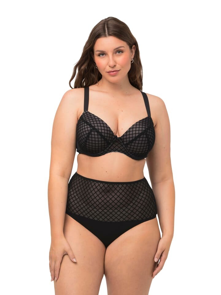 Бюстгальтер на косточках, мягкая чашка с мягкими чашками и ромбовидным бархатом на нежной сетке. Регулируемые бретели.