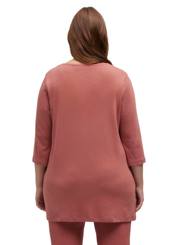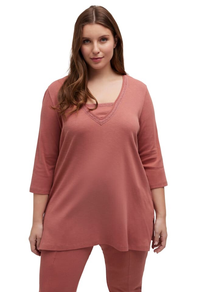 Длинная рубашка из джерси из органического хлопка. Удобный длинный А-силуэт с кружевом и вставкой на V-образном вырезе. Рукава 3/4. Органический; сертифицирован ECOCERT Greenlife, лицензия № 152026.