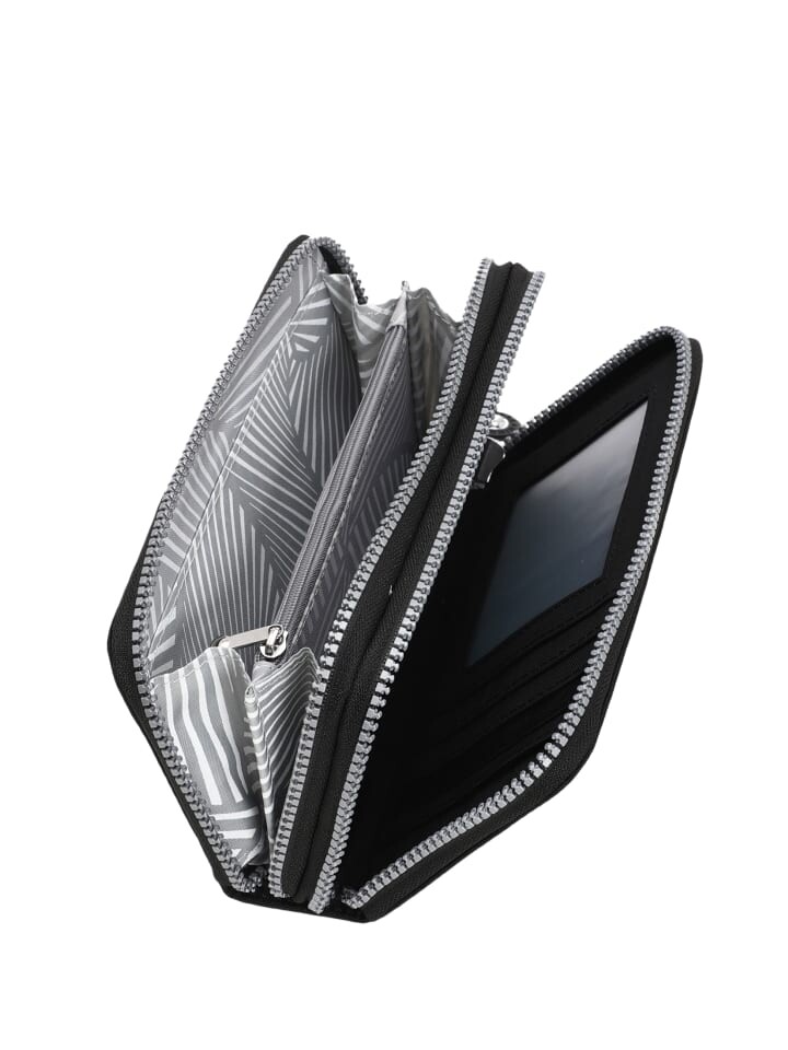 Откройте для себя тонкий прямоугольный аксессуар с текстурированной отделкой и застежкой-молнией для удобного доступа. Металлический язычок добавляет удобства этой прочной конструкции с тисненым логотипом спереди. Идеально подходит для хранения наличных денег, карт и удостоверений личности внутри.