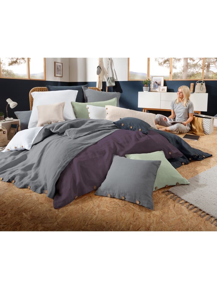 Полульняное постельное белье Erwin Müller «Деггендорф». Пуристическая изысканность в вечной красоте. Специальная смесь материалов — прочная, но мягкая смесь хлопка и льна — выглядит натуралистично и оригинально. Характерна его типичная структура и элегантный морщинистый оттенок, а деревянные пуговицы в деревенском стиле придают образу завершающий штрих. Мягкая, предварительно выстиранная ткань пропускает воздух и приятно охлаждает в теплые дни. Он очень воздухопроницаем, приятен для кожи и регулирует влажность. Наилучшие условия для спокойного, расслабленного сна.
