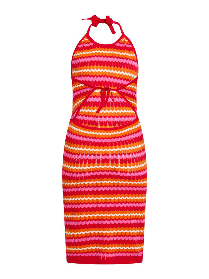 Представляем элегантное и утонченное платье миди приталенного силуэта, идеально подходящее для тех, кто ценит современную элегантность. Эта модель без рукавов имеет высокий вырез и привлекательную застежку-бретельку сзади. Ребристая текстура и вертикальные линии, проходящие по всему платью, создают визуально эффектный вид, а облегающий крой красиво подчеркивает ваши изгибы. Платье идеально облегает фигуру благодаря открытой спинке и завязыванию сзади.