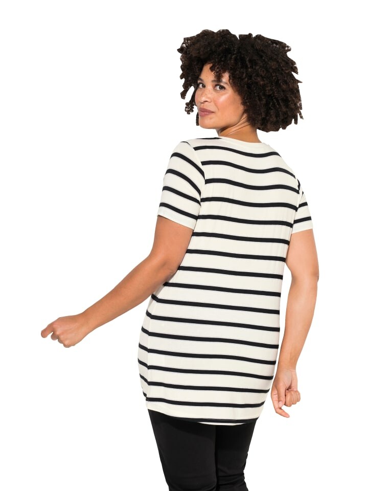 Футболка удобного кроя из мягкого трикотажа в рубчик с полосками. Крупный шрифт спереди. Рукава до половины.