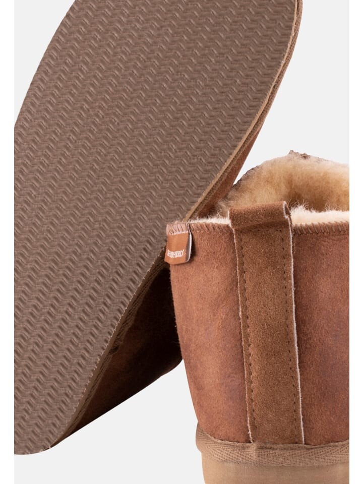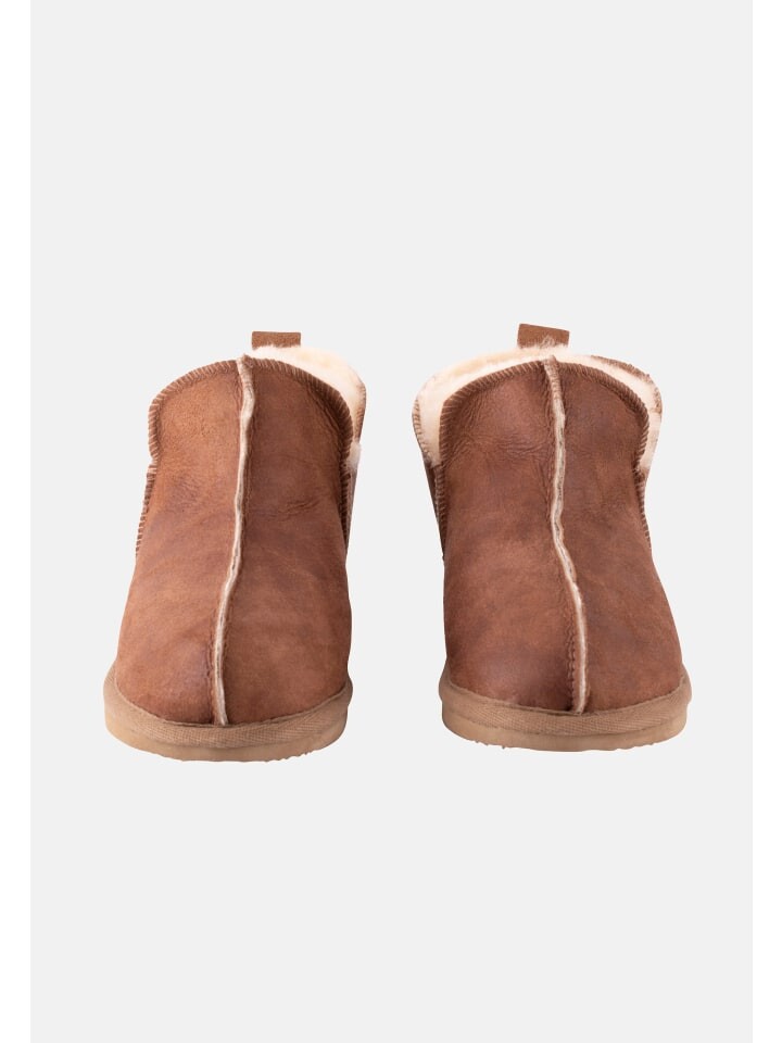 Эти тапочки из овчины – это комфорт и стиль. Благодаря высоте чуть выше щиколотки и декоративным внешним швам они привлекают внимание. Текстильная лента вокруг подошвы и замшевая петля придают им особый шарм. Подошва из ЭВА обладает отличными амортизирующими свойствами и малым весом, что делает ее популярным материалом для изготовления подошв. Хотя поначалу они могут быть немного тесными, благодаря натуральному материалу они адаптируются к ноге и обеспечивают максимальный комфорт.