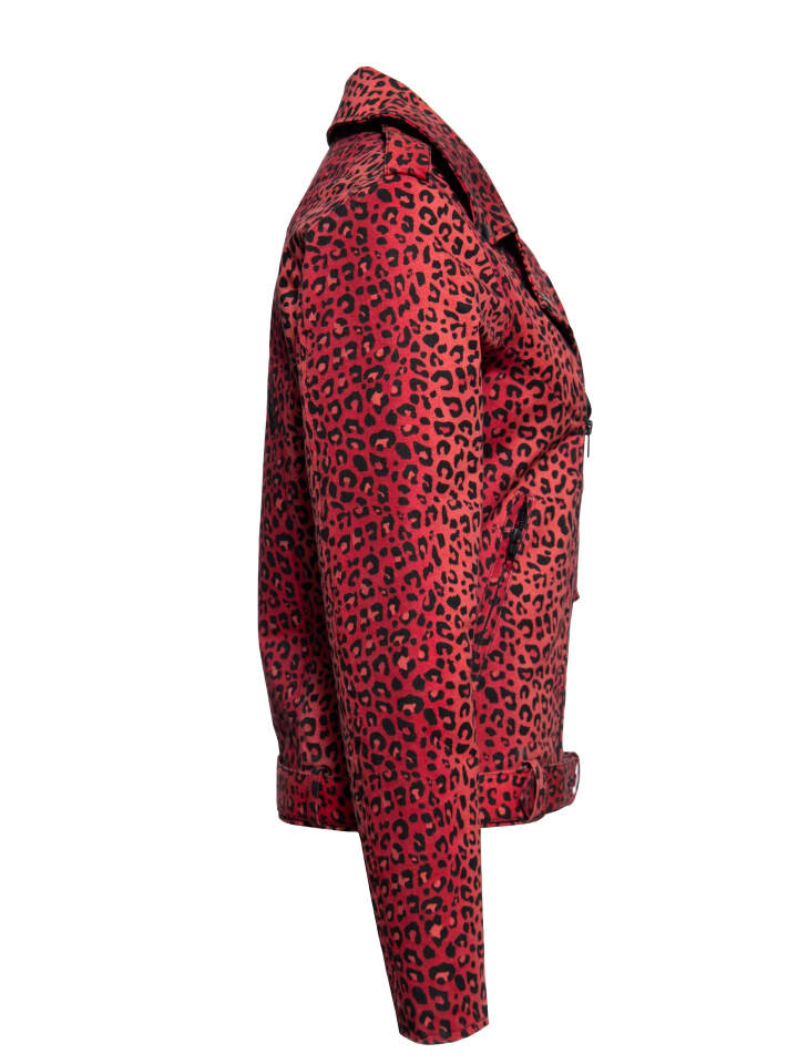 Забудьте о традиционной коже; Эта куртка изготовлена из прочного и прочного хлопка. Это обеспечивает долговечность и высокий уровень комфорта. Привлекательный леопардовый принт привлекает внимание и является идеальным спутником в диких приключениях.
